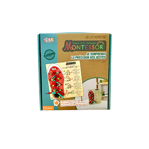 Ce joli jeu inspiré de la pédagogie Montessori aide les enfants à maîtriser un geste du quotidien : faire leurs lacets tout seuls, en confiance et à leur rythme.